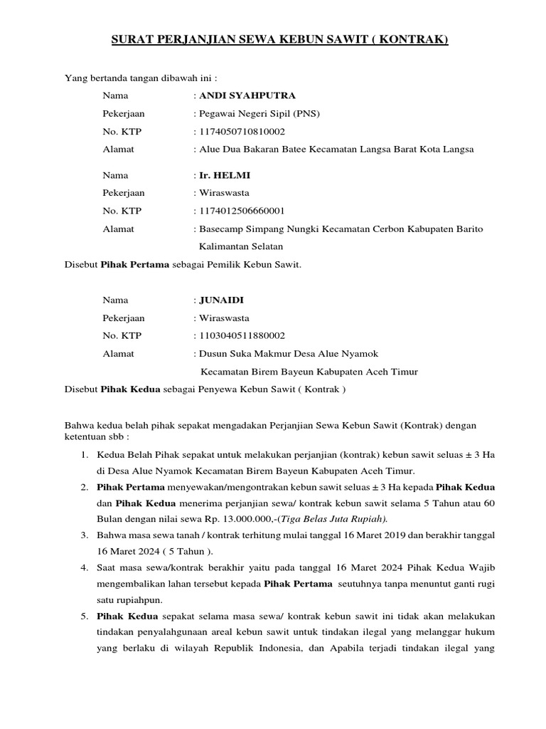 Surat Perjanjian Sewa Kebun Sawit Pdf